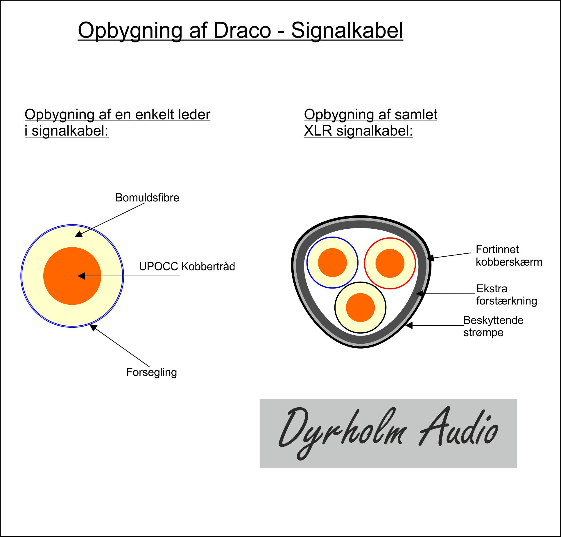 I Draco Serien er signalkablerne opbygget af en enkelt UPOCC kobbertråd i hver leder. Trådene er omflettet med bomuldsfibre og forseglet mod korrision. Denne opbygning giver minimum af ophobning af statisk elektricitet og beskytter mod vibrationer.